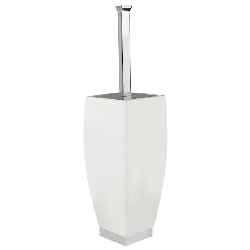VINTAGE Álló wc-kefetartó szögletes fényes fehér kerámitartóval szálcsiszolt arany színben. A kép csak illusztráció!