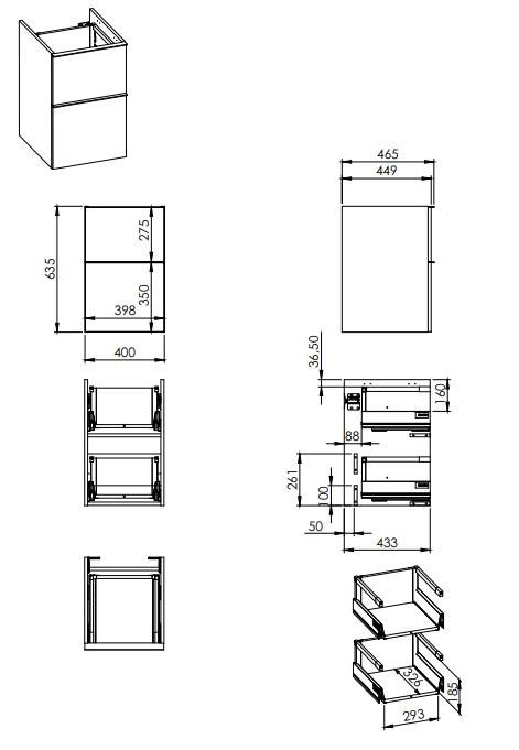 -alsó -mély fiókok oldalsó fémkerettel