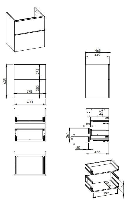 -felső fiókok szifonkivágás esetén fiókrendezővel