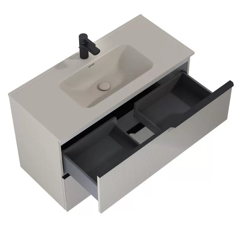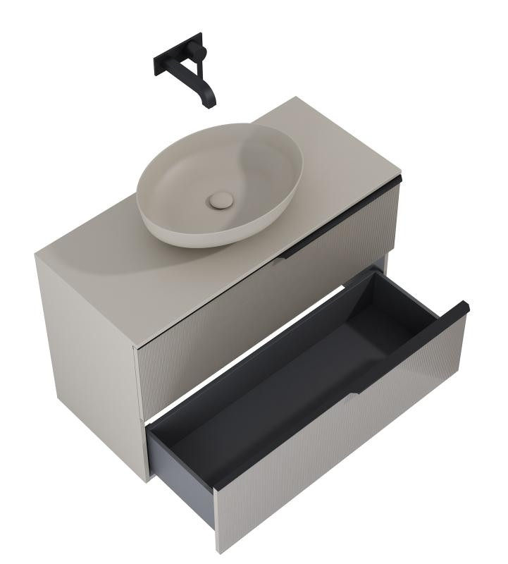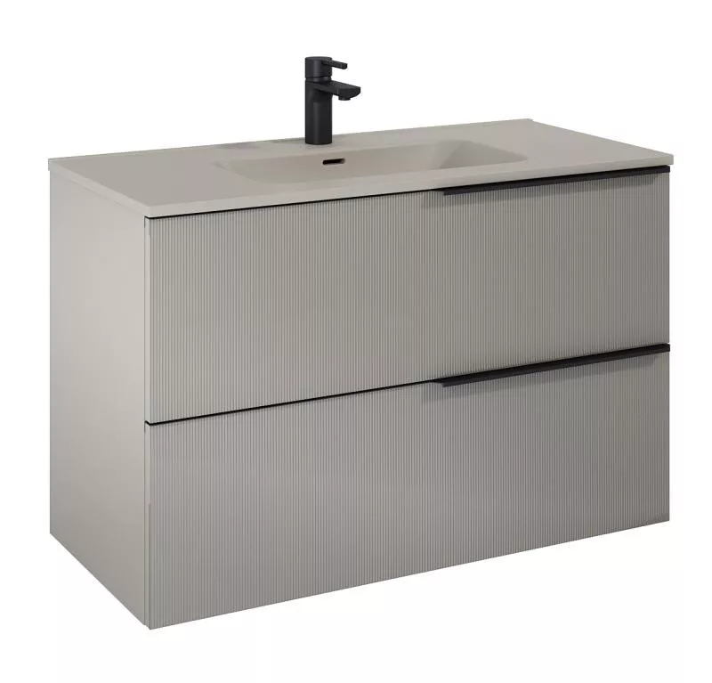 AREZZO design MONTEREY GLASS 100 cm-es alsószekrény, 2 fiókkal, matt beige - AR-168747
