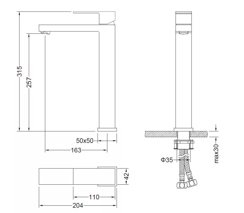 A csaptelep bemeneténél javasolt maximális üzemi hőmérséklet 65 °C, míg az ajánlott maximális üzemi nyomás 0,5 MPa.Kifolyó magasság (mm) 257 Kifolyó hossza (mm) 163 Leeresztő Külön rendelendő Szélesség (mm) 42 Magasság (mm) 315 Mélység (mm) 204 Szín Arany Alapanyag Réz Felület Szálcsiszolt Kerámia betét CITEC Csaptelep típusa Magasított mosdócsaptelep Forma Szögletes Prémium 1 Keresőkifejezések 4402G -