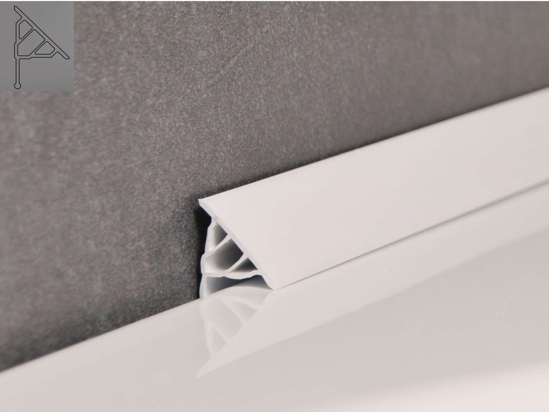 A takaró sín a fal és a fürdőkád vagy a zuhanytálca közötti hézagot takarja. Optimálisan lefedi a hézagot, lezárja és karbantartása sokkal egyszerűbb, mint a nem egyenletesen felvitt tömítőanyag tisztítása, amely a szennyeződések lerakódása után rontja az egész munkadarab megjelenését.